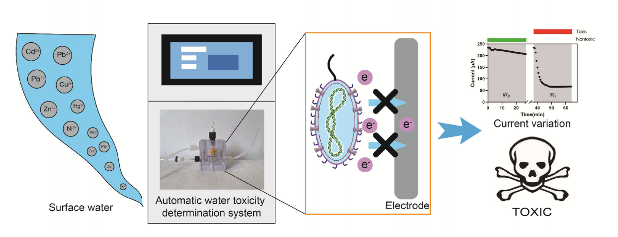 《“十四五”生态环境领域科技创新专项规划》指出:我国将使用生物毒性指标评价工业废水达标排放。工业废水色度高、浊度高,常见生物毒性测定技术易假报警。基于电化学活性菌(EAB)生物毒性测定技术不受水体色度、浊度干扰,能够准确测定工业废水生物毒性。然而,国内使用的EAB生物毒性测定装备依赖进口,有卡脖子风险,且灵敏度低、不能应急检测。本团队建立了具有自主知识产权的工业废水生物毒性高灵敏度实时监测技术及装备、应急检测技术及装备,为使用生物毒性指标评价工业废水达标排放提供了自主可控的技术支撑。