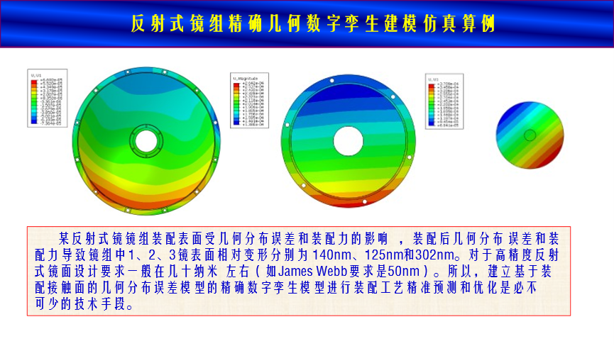 精确数字孪生建模技术(accurate digital twin modeling)对航天航空重大装备、高精度仪器仪表和机床、复杂环境作业装备等机电产品的全生命周期性能精准预测、优化和控制尤为重要。未来物理产品制造的同时必将同时产出对应的、在虚拟环境运行和同步交互的精确数字孪生产品,这也是目前国际上研究的热点。团队提出了可与三维设计计算模型无缝集成的精密装配接触面几何分布误差建模和面向精度和性能的精确数字孪生建模计算方法等多项具有国际领先水平的创新技术,打通了精确数字孪生建模技术路径,并在惯约微靶、航空发动机、光学镜头等装配过程的仿真分析中得到了有效的应用。